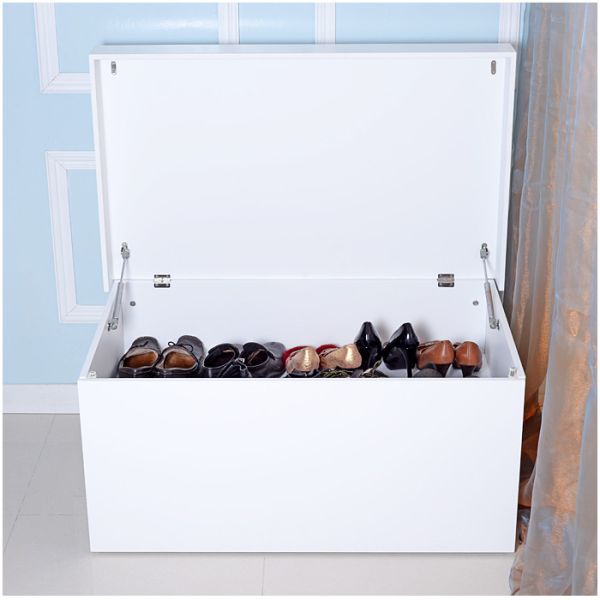 Solid Wood Product White Large Shoe Cabinet Box Bench For Living Room
